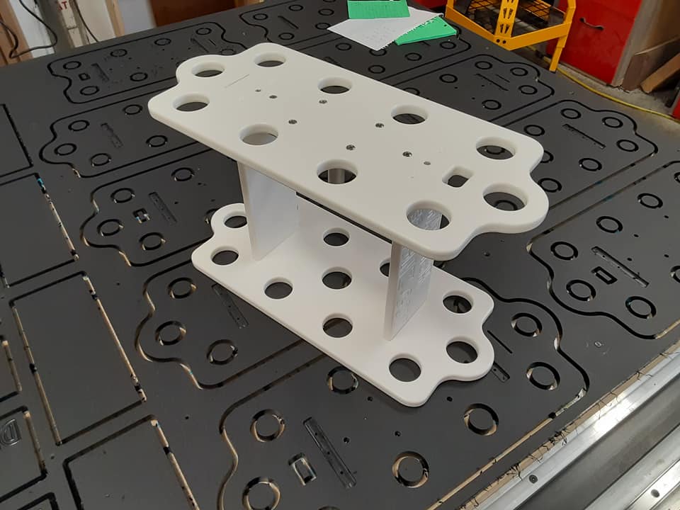 Secure your rods and make your fishing experience effortless with the V10 seat post rod rack! This ultimate solution keeps your rods neatly out of the way and away from damage. It fits into any standard seat post with a 3/4" hole in the top of the post. Rod holes spaced 4” on-center, and a 1.5” diameter. Plus a custom aluminum mount and knife slot and pliers hole.  This 20 long x8 wide x 10 tall assembled rack is made from ½” thick starboard marine grade plastic. Get a seat post Rod Rack for a stress-free fishing journey!