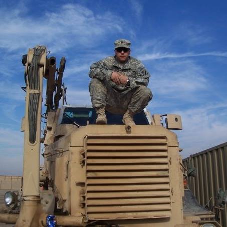 This is me back in late 2007 in southern baghdad. Standing on the front of the buffalo I drove and maintained.