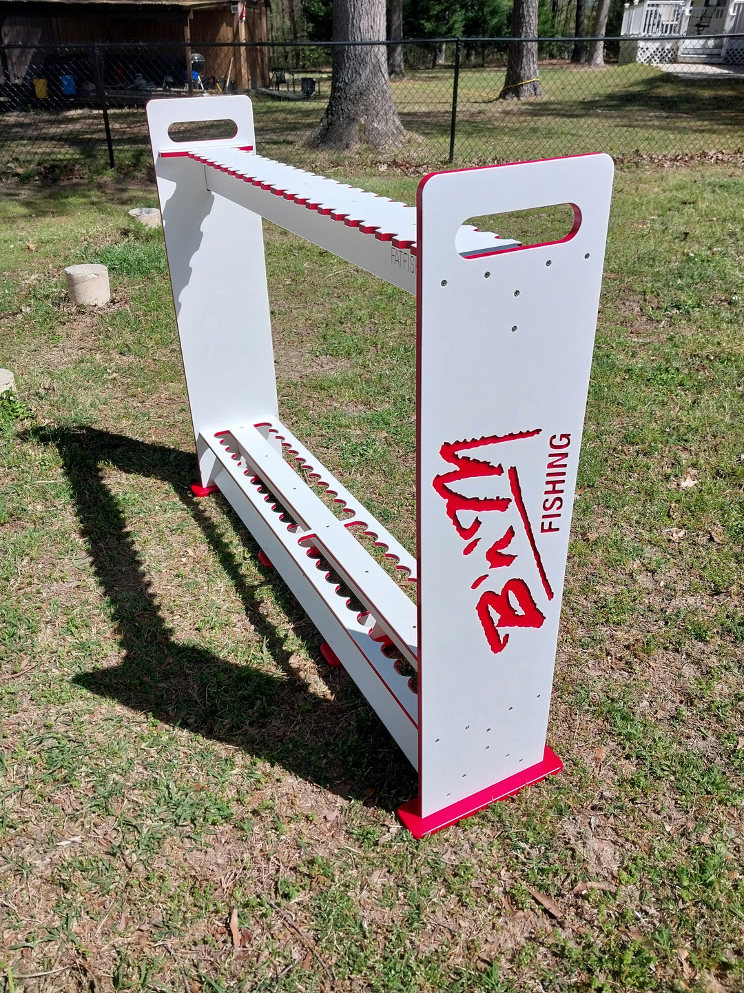 These custom made wood fishing rod racks come in 3 sizes and many color options.