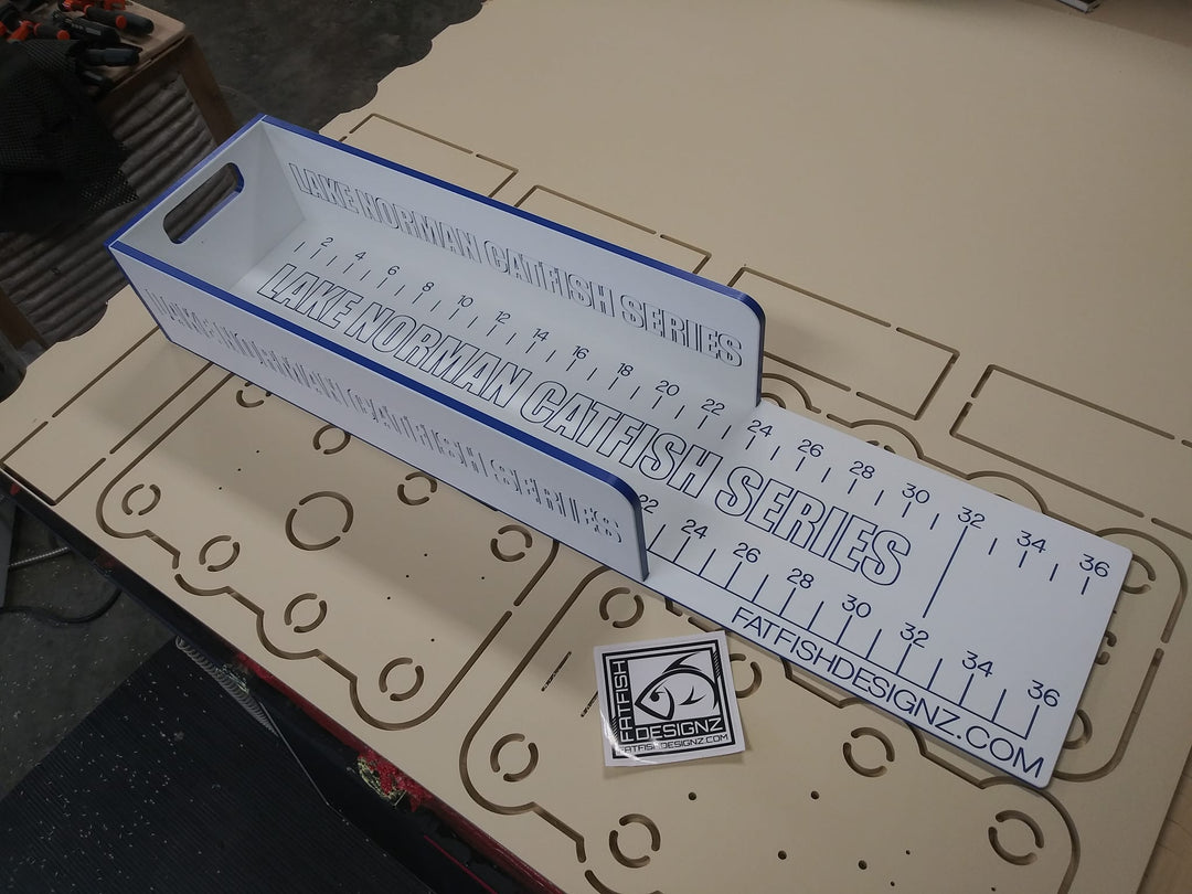 Custom bump board / fish measuring board, these unique design keep the fishes head in place to prevent thrashing around.